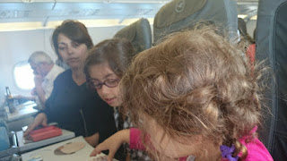 Elle a adoré le décollage et voir s’éloigner le sol tandis que nous montions à l’altitude de croisière. Le trajet fut plutôt court. Nous nous sommes rendus compte qu’entre les formalités d’enregistrement et les déambulations d’un endroit à un autre, le temps passait plutôt très vite.