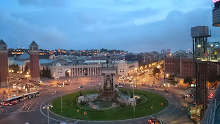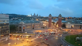 Arrivés à Barcelone nous sommes allés à l’extérieur récupérer une carte de bus et avons pris le bus 46 en direction de la place Espanya. Après une heure de trajet on débarque sur cette place démesurée et magnifique.