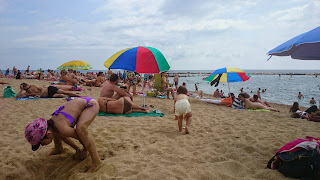 Nous nous sommes donc rendus à Barceloneta en bus (D20 en direction Pg Maritim), en passant devant le port et la célèbre colonne avec la statue de Colomb.