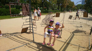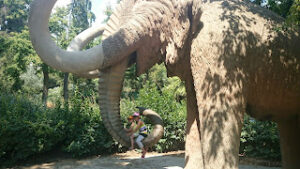 Nous avons poursuivi ensuite vers le château des trois dragons jusqu’à une aire dédiée aux enfants. On y a laissé les filles se fatiguer pendant une petite heure, avant de leur proposer un petit jeu de piste pour trouver un mammouth dans le parc.