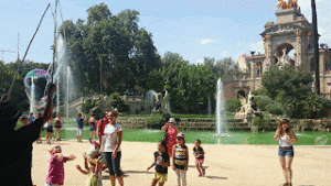 Le jeu n’a pris que quelques minutes, car après la stupéfaction engendrée par la vision de la magnifique cascade à laquelle a collaboré Gaudi, le monumental mammouth de Miquel Dalmau a été trouvé avec beaucoup de facilité par les filles.