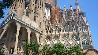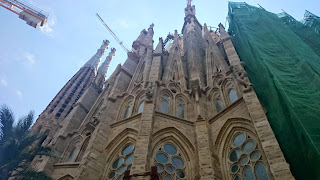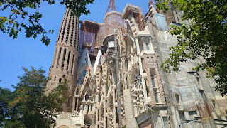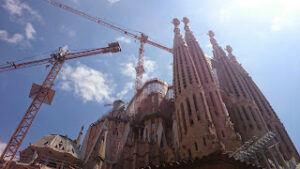 Après le petit déjeuner, nous nous offrons la Sagrada familia ou tout au moins une vue extérieure. Deux ou trois petites choses nous ont dissuadé d’envisager une visite complète. Nous avons deux filles de trois et sept ans qui nous rendaient problématique l’interminable file d’attente sans compter le temps de visite. Le tarif est également rédhibitoire car l’entrée est proposée à 12 €. J’ai du mal à adhérer au fait de payer pour entrer dans une église alors que j’ai déjà mis plus en brûlant un cierge et en déposant dans le tronc.
