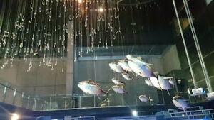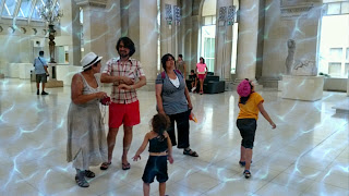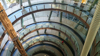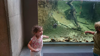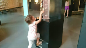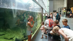 En début d’après-midi, nous passons une petite heure dans les transports publics pour aller plonger dans l’histoire de notre terre. Le CosmoCaixa est une sorte de cité de la science où l’on sait que nos filles vont trouver leur compte. Pari réussi! Elles ont dû faire plus de la moitié des expériences qui y sont proposées, voir une bonne dizaine de films et s’extasier devant l’immense baie vitrée donnant sur un éco-système qui fait songer à ce qu’aurait pu être une forêt aux premiers âges de l’humanité. Cerise sur le gâteau, la baie vitrée donne sur deux mètres de profondeur d’eau où évoluent d’énormes poissons et quelques tortues aquatiques.