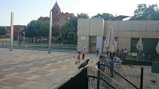 Nous poursuivons ensuite nos pérégrinations à travers le parc en direction de la fondation Joan Miro. Nous passons ensuite devant la piscine olympique qui donne sur une vue splendide de la ville en contrebas puis nous nous dirigeons vers le téléphérique.
