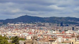 L’édifice qui abrite le musée est un beau palais sis en bordure du parc. Nous profitons de la jolie vue matinale sur une Barcelone éternellement(?) voilée d’un brouillard(?) matinal.